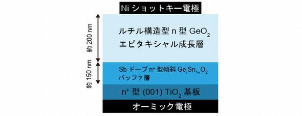 研究グループはこれまでの研究で、ミスト化学気相成長法(ミストCVD)と傾斜GexSn1-xO2バッファ層技術を用いて、TiO2基板上に単相のr-GeO2エピタキシャル層を成長させることに成功していた。今回は、この技術を応用した。