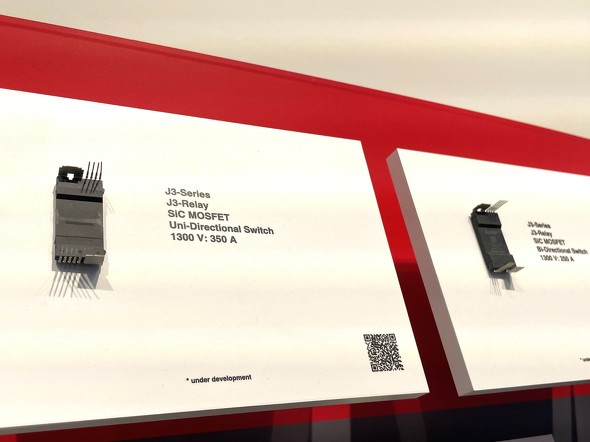 三菱電機が、拡大が見込まれるxEV(電動車)市場に向け車載SiC(炭化ケイ素)デバイスの技術開発を強化している。2024年に車載用パワー半導体モジュールの量産品として同社初のSiC MOSFET搭載品である「J3」シリーズを発表した同社は、世界最大規模のパワーエレクトロニクス展示会「PCIM Expo&Conference 2025」(2025年5月6〜8日/ドイツ・ニュルンベルク)において、開発中の「J3シリーズ SiCリレーモジュール」を初公開した。