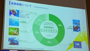 産業事業を展開する田中貴金属工業で代表取締役副社長執行役員を務める多田智之氏は、同事業の現状と注力分野を紹介した。