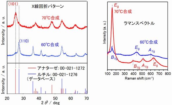 酸化チタン(TiO2)は、白色顔料や光触媒として知られ、ペロブスカイト太陽電池の構成材料などに用いられる。ルチル型やアナターゼ型など複数の結晶構造を有する酸化チタンを結晶化するためには、一般的に100℃以上の高温・高圧の水熱合成法や、約500℃での熱処理が行われてきた。