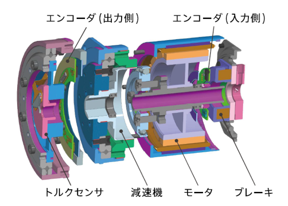 「VA(Virtualized Actuator)」は、内部の摩擦や慣性を打ち消すことでシミュレーション通りの動作を再現する力制御型アクチュエーターだ。トルクセンサー、減速機、モーター、エンコーダー、ブレーキで構成されている。