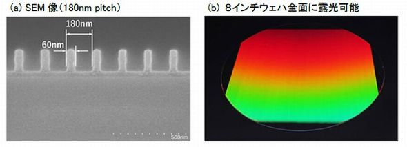 今回開発した干渉露光装置は、これらの課題を解決した。光源には波長266nmの光を発生させるDPSS(LD励起固体)レーザーを、フォトレジストに化学増幅型KrFレジストを、それぞれ用いた。これにより、露光性能を維持しながら安定した露光品質を実現した。