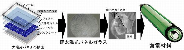 日本大学や福岡工業大学、秋田大学らの研究グループは2026年3月、廃棄される太陽光パネル(WSP)ガラスをリチウムイオン電池(LiB)の電極材料にアップサイクルするための技術を開発したと発表した。