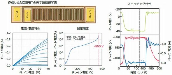 ダイヤモンドMOSFETで初の200V、1AのSW動作を達成 : 耐圧550V、ドレイン電流0.8A