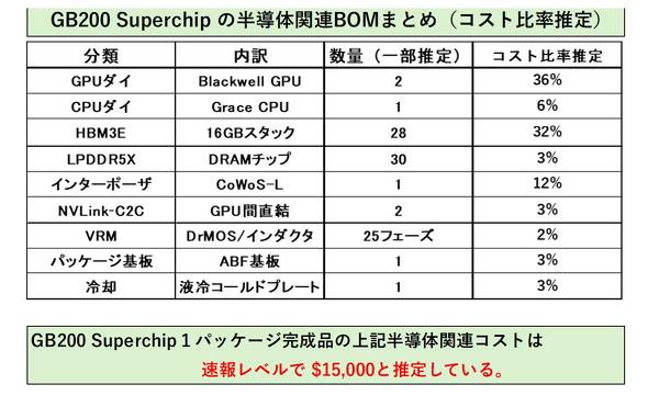 上図はMicrosoftやMetaが採用しているであろうGB200を搭載したAIサーバのコストおよびスペックを、筆者なりに推察したものである。グロスバーグでは現在、50種以上の電子機器を対象に同様の分析を進めている。実際に実機を入手して分析するわけではないので、コストやスペックの推定精度にはやや限界がある。だが、高価で高精度な分析までは必要としない、大体のコストやスペックが安価で情報入手できれば良い、というニーズにお応えすべく、このBOM分析の情報サービスを準備している。対象としては、今後AI機能が搭載されそうな電子機器を中心に、どのような半導体が搭載されて、どの程度のコストでどのようなスペックの帯域になりそうなのか、分析をご紹介する予定である。ご興味のある読者は、グロスバーグWebサイトにアクセスいただければ幸いである。